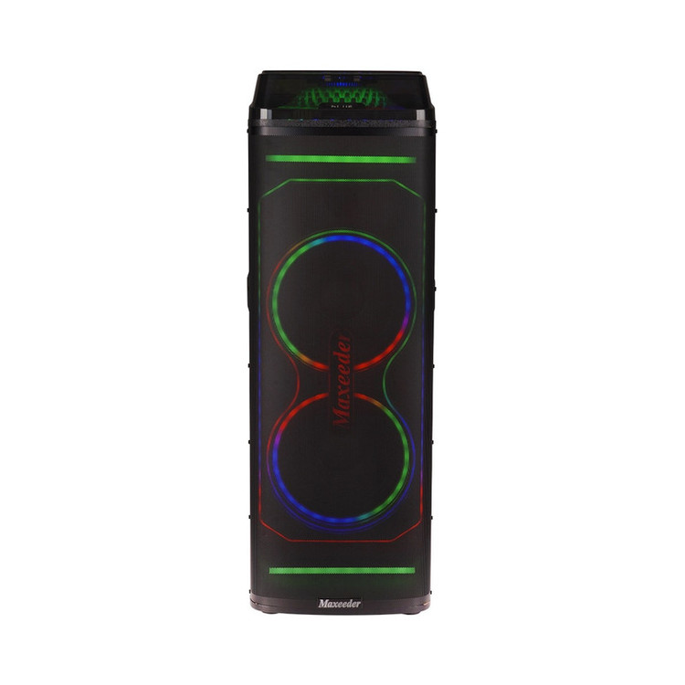 نورپردازی چرخشی دور ساب ها - نور رنگی بالای اسپیکر-دارای سیستم حذف صدای خواننده- دارای اولویت میکروفون (Microphone Priority)-قابلیت کارائوکه (Karaoke)-دارای 2 ساب 10 اینچ و تیوتر-دارای میکروفون بیسیم با صفحه نمایش دیجیتال -ریموت کنترل- ورودی گیتاربرقی -قابلیت TWS (وصل همزمان دو اسپیکر مشابه بهم)-بلوتوث نسخه 5- باتری داخلی 12V