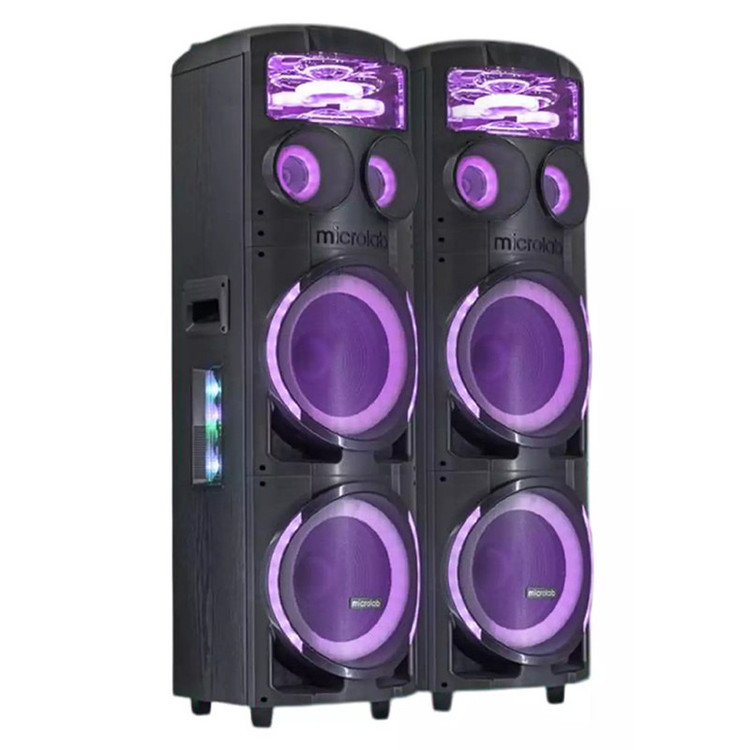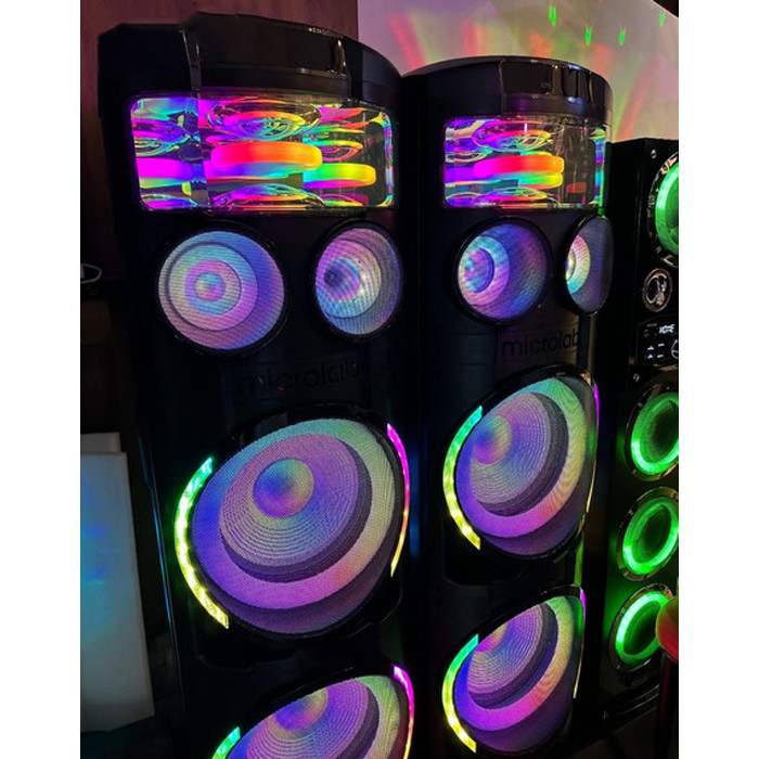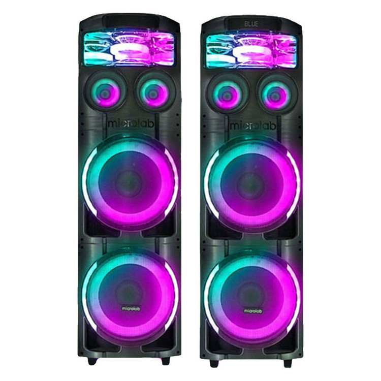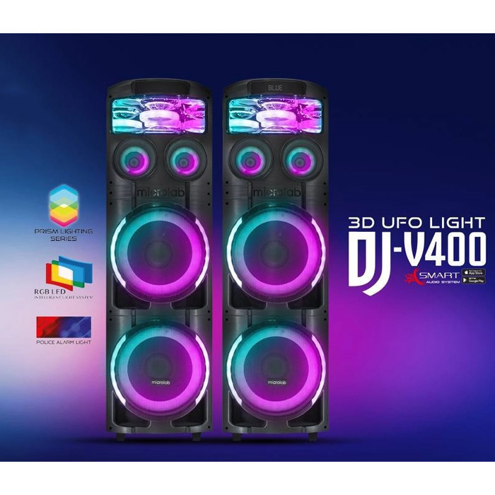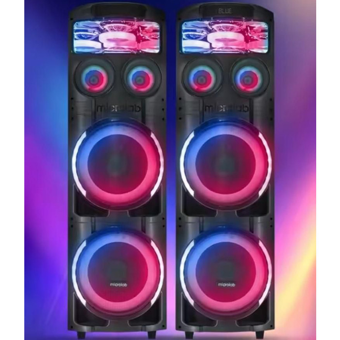 پخشکننده خانگی میکرولب مدل V400 3D، مجموعهای دو عددی از اسپیکرهای چمدانی است که برای تجربه صوتی قدرتمند و پرانرژی طراحی شده است. این مدل با ابعاد ۱۲۰×۳۰×۳۰ سانتیمتر و وزن تقریبی ۱۴ کیلوگرم، بهراحتی قابل حمل بوده و برای مهمانیها و جمعهای خانوادگی ایدهآل است. بدنهی دستگاه از پلاستیک مقاوم ساخته شده و شامل چهار سابووفر قدرتمند با سایز ۱۲ اینچ است که صدایی عمیق و باس قدرتمند را تولید میکند. این سیستم با توان خروجی کلی ۳۵۰ وات، صدایی پرقدرت و با کیفیت ارائه میدهد که فضای محیط را به خوبی پوشش میدهد. از قابلیتهای ارتباطی این پخشکننده میتوان به بلوتوث، USB، کارت حافظه و ورودی AUX اشاره کرد که امکان اتصال آسان به انواع دستگاهها را فراهم میکنند. وجود نشانگر LED و رقص نور، به تجربه شنیداری جذابیت و هیجان بیشتری میبخشد. پخشکننده خانگی V400 همراه با میکروفون بیسیم و ریموت کنترل عرضه میشود که امکان اجرای کارائوکه و کنترل از راه دور را برای کاربران فراهم میکند. این مجموعه دو عددی، گزینهای کامل و همهجانبه برای تجربهای صوتی باکیفیت و سرگرمکننده است.