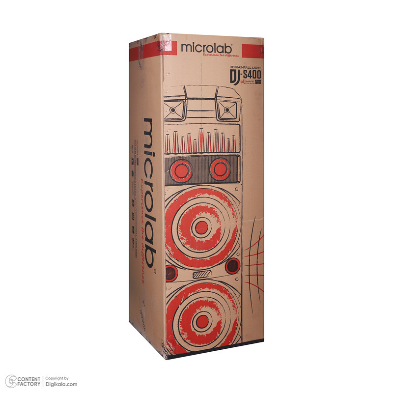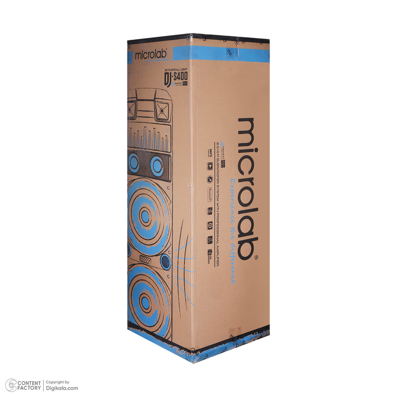 کیلوگرم و ابعاد ۴۰×۲۵×۲۵ سانتیمتر عرضه میشود و از دو اسپیکر مجزا بهره میبرد که صدایی واضح، پرقدرت و خوشفرم ارائه میکنند. توان خروجی ۱۰۰ وات این سیستم، برای پخش موسیقی در فضاهای متوسط عملکرد خوبی دارد. وجود پورتهای AUX، USB و ورودی میکروفون امکان اتصال آسان به انواع دستگاههای صوتی، فلش مموریها و تجهیزات جانبی مثل میکروفون را فراهم میکند. منبع تغذیه دستگاه از برق شهری (AC) تأمین میشود و طراحی آن برای استفاده در فضاهای داخلی مانند اتاق نشیمن، دفاتر کار یا سالنهای کوچک بسیار مناسب است. بدنه چوبی نهتنها باعث افزایش دوام دستگاه شده، بلکه به گرمتر شدن و غنای صدای خروجی نیز کمک میکند. میکرولب مدل DJ S400 ترکیبی متعادل از طراحی زیبا، کیفیت صدای مناسب و امکانات کاربردی را در اختیار کاربران قرار میدهد تا تجربهای لذتبخش از پخش موسیقی داشته باشند.